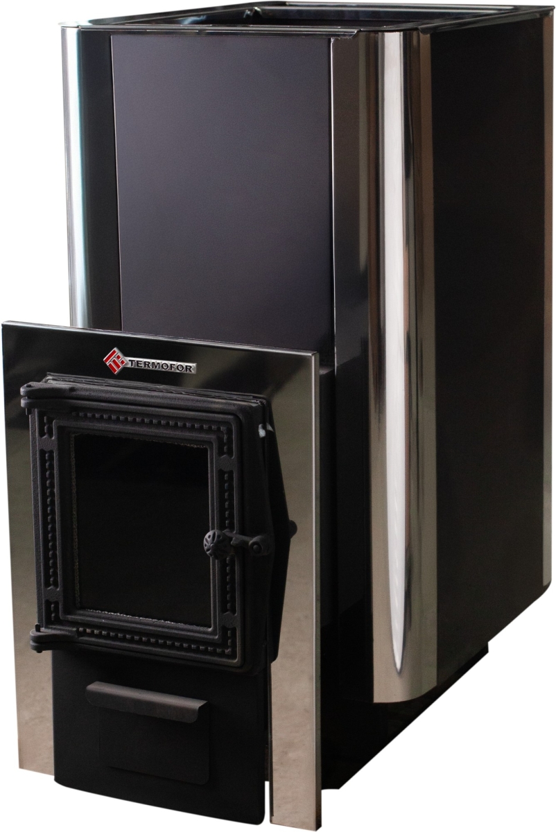 Печь с мощной топкой и  площадью банного помещения не более 20 м². Без двери обрамления.