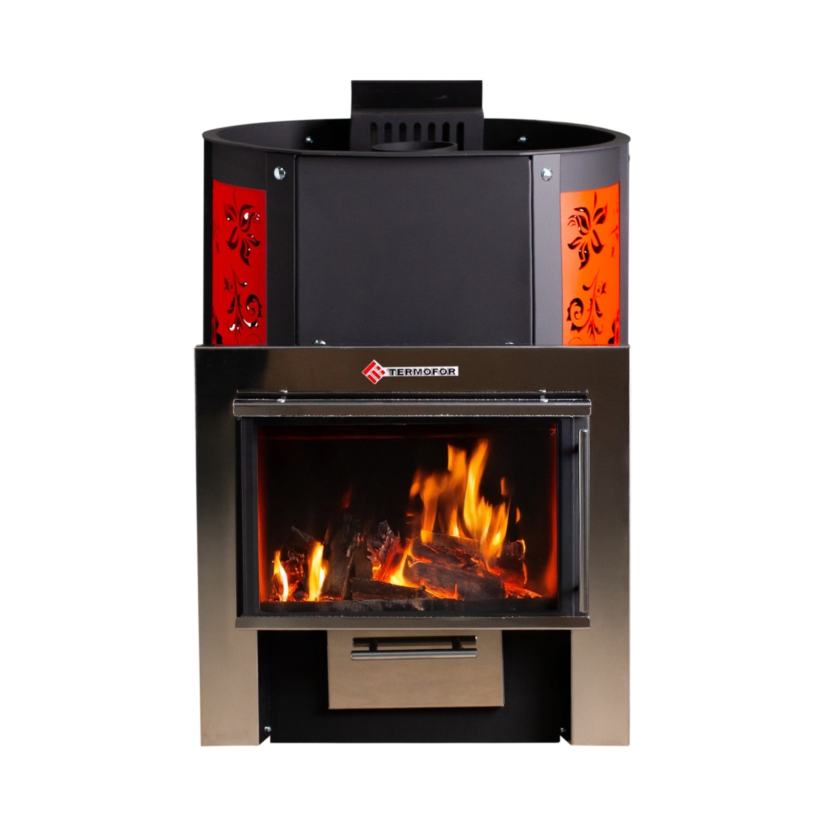 Печь для бани Народная 9-14 (панорамная дверка, парогенератор)